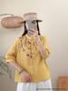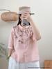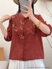 2026 Summer Women's Artistic Embroidered Linen Shirt: Chinese Style, National Flair, Small Lapel, Five-Point Sleeves