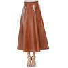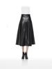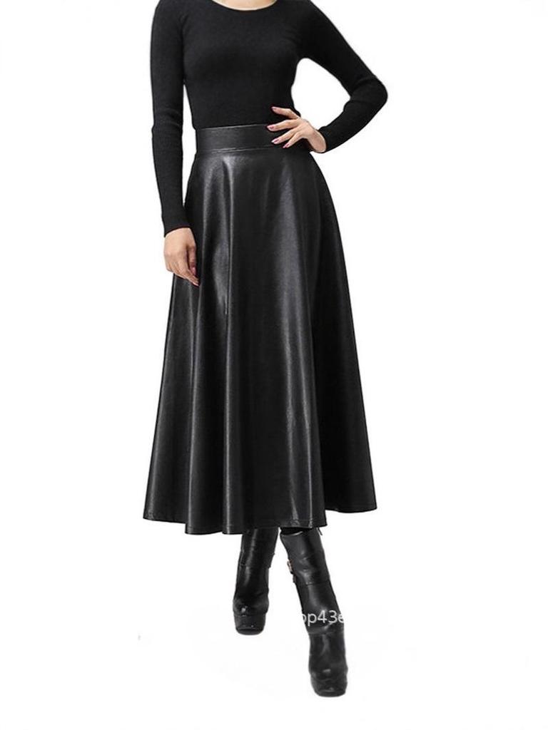 2025 European Early Spring Fashion High Waist Long Flare Leather Skirt for Women