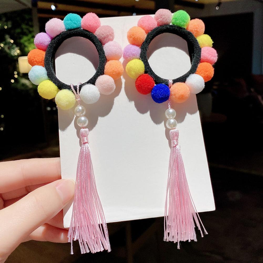 1 Pair of Hair Band Cloth Tassel Colorful Ball Plush Retro Style Hair Band