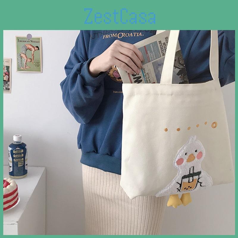Soft Plush Duck Print Canvas Shoulder Bag With Zipper Closure For Leisure