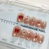 Press On Nails Artificial Acrylic Nails Glossy False Nails Full Cover Stick On Nails Square Fake Nails with Glitter Design Glue On Nails for Women