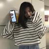 Black and White Color Block Striped Women's Casual Loose Long Sleeve T-shirt (2025 Korean Style)