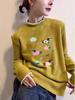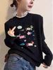 Lace Collar Cartoon Print Velvet T-Shirt: 2025 Autumn/Winter, Plus Size, Half-High Collar, Long Sleeve, Women's Trendy Style