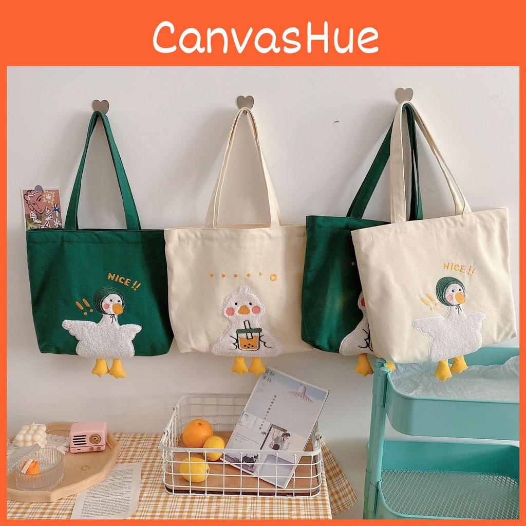 Adorable Duck Pattern Canvas Carryall With Inner Zipper Pocket For Commuting