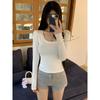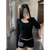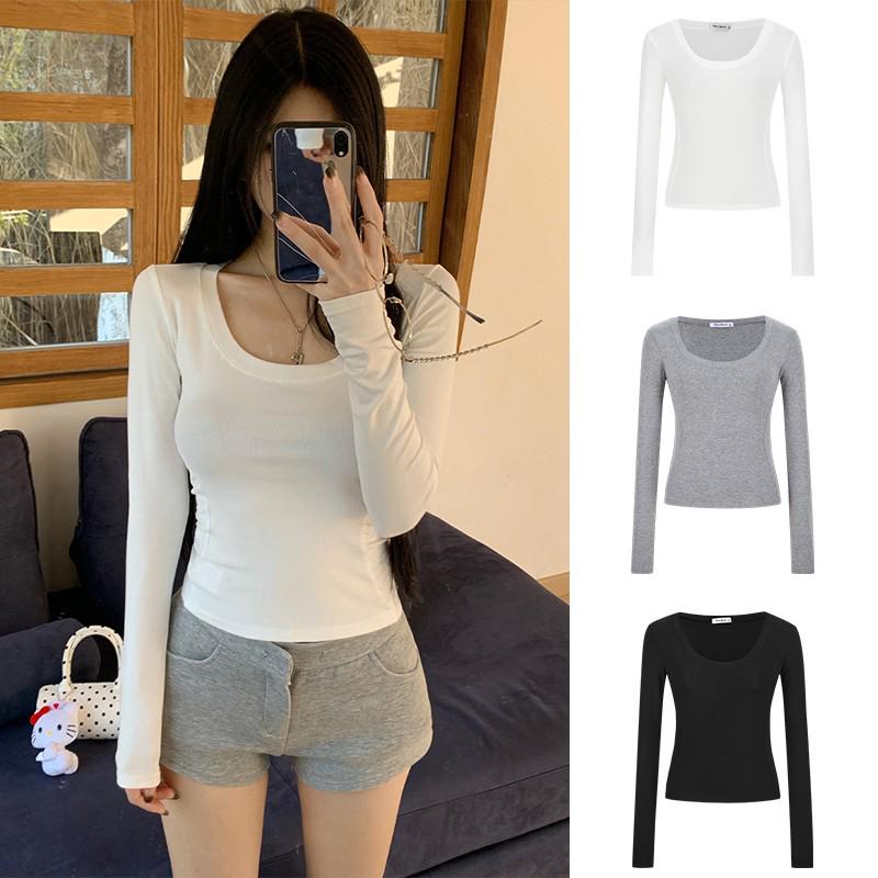 Elevate your wardrobe with this stylish cropped long-sleeve t-shirt, perfect for both spring and autumn. Made from soft and breathable cotton, it offers all-day comfort and a relaxed fit. The solid pattern adds a classic touch, while the U-neckline enhances its modern appeal. Ideal for layering or wearing on its own, this versatile piece effortlessly complements any casual outfit.