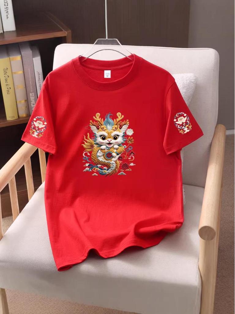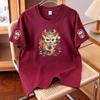 New Chinese Style Unisex Cotton Short Sleeve T-shirt with Auspicious Print