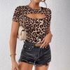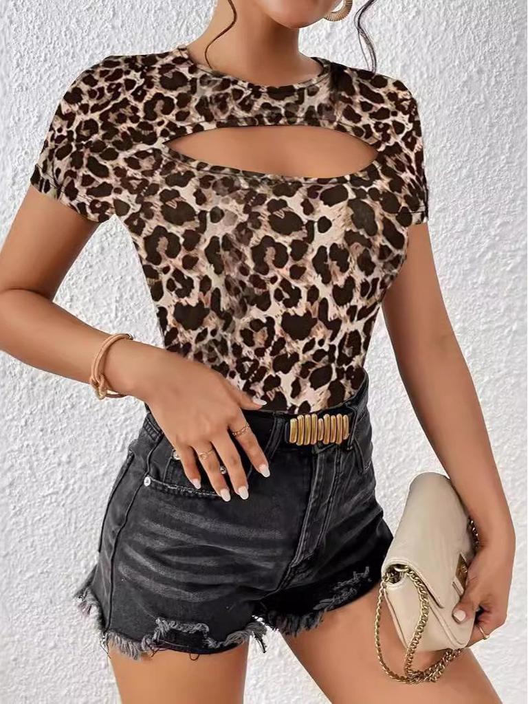 European & American Women's Summer Leopard Print Round Neck Short Sleeve T-shirt