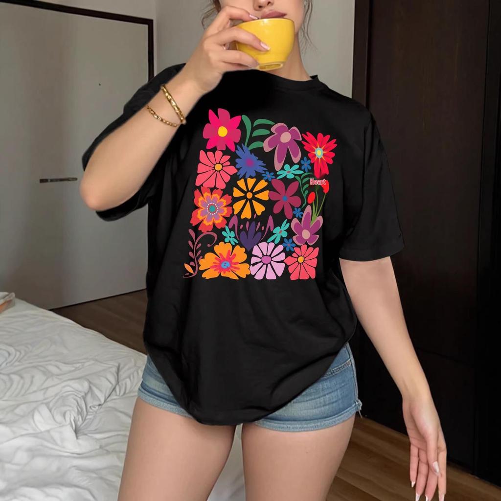 This chic short-sleeve t-shirt is crafted from a soft and durable polyester material, perfect for a relaxed and comfortable fit. It features a round neckline and is adorned with a vibrant floral print, embracing a retro bohemian style. Ideal for adding a splash of color to any casual wardrobe, this loose-fitting top is both stylish and versatile.