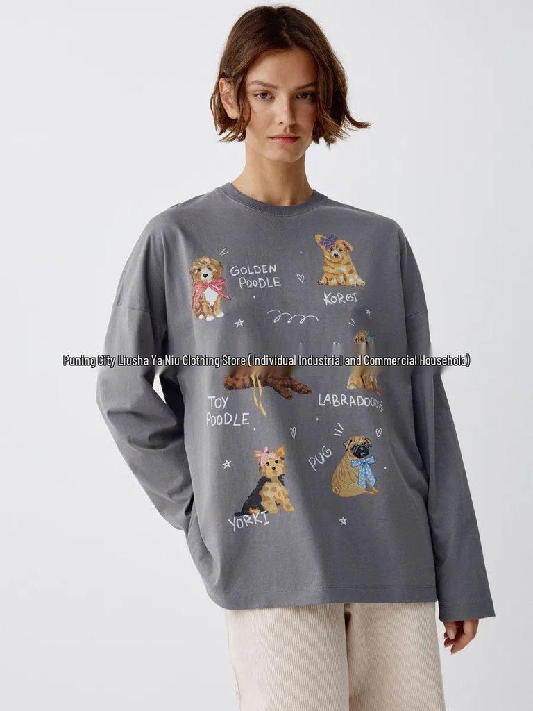 Embrace the cozy vibes of autumn with this adorable long sleeve top, featuring a cute puppy print that adds a playful touch to your wardrobe. Made from 100% cotton, its soft material ensures comfort and breathability, perfect for layering or wearing on its own. The round neckline and hip hop style give it a modern edge, making it an ideal choice for both casual outings and relaxed days at home.