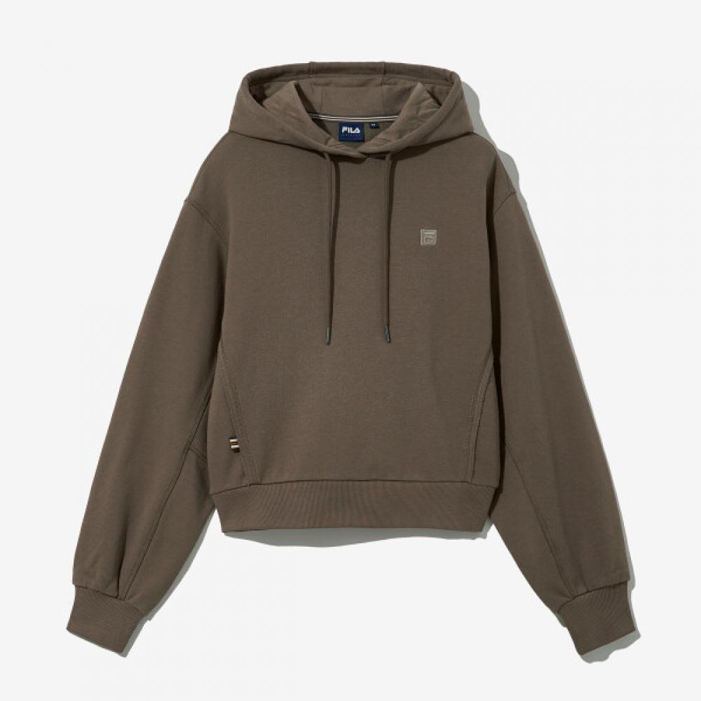 Fila Women's Semi-Crop Post-Run Hoodie FS253PO01F004_217 offers comfort and style with its semi-crop design, allowing for versatile styling options. Available in Charcoal color, it showcases a practical style with premium outer fabric and high moisture absorption.
