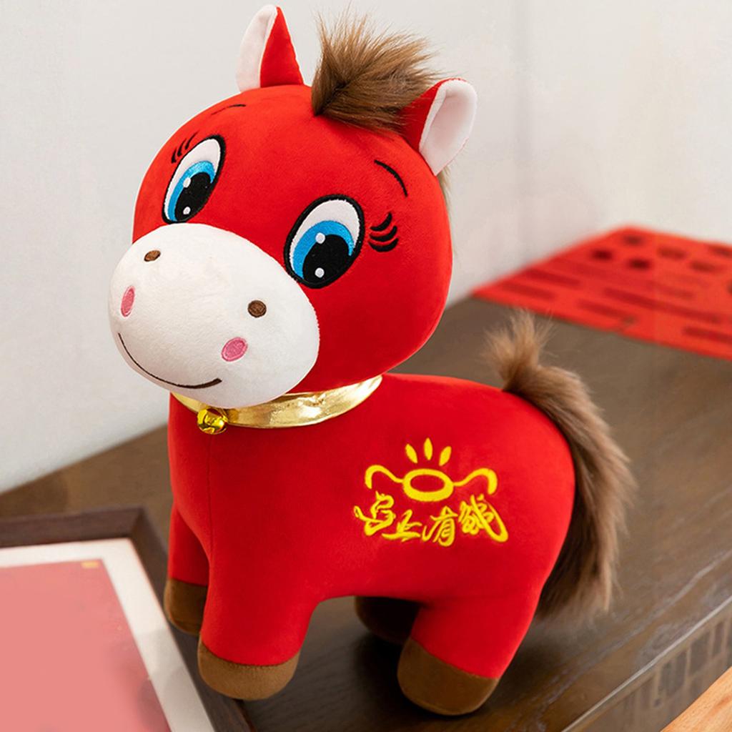 Year of The Horse 2026 Plush Funny Smiling Horse Plushie Figurine Lucky Chinese Lunar New Year Mascot Zodiac Ornament for Home