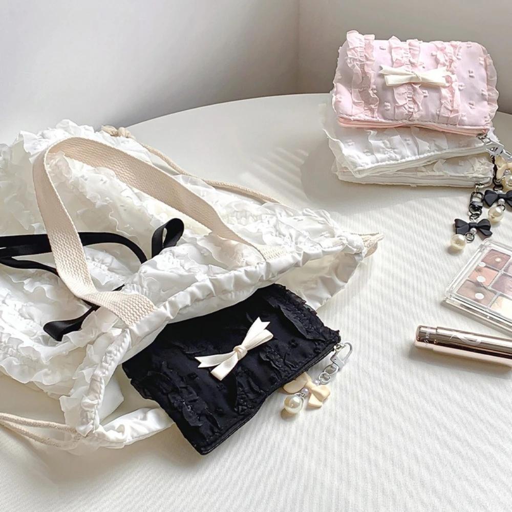 Mini and Cute Makeup Bag, Lace Bow, Portable Coin Wallet Handbag, Ladies' Cosmetics Storage Bag