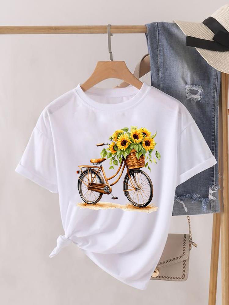 (Asian Size) 90s Flower Cute Clothing Lady O-neck Short Sleeve T-shirts Printed Female Top Casual T Shirt Fashion Women Graphic Tee