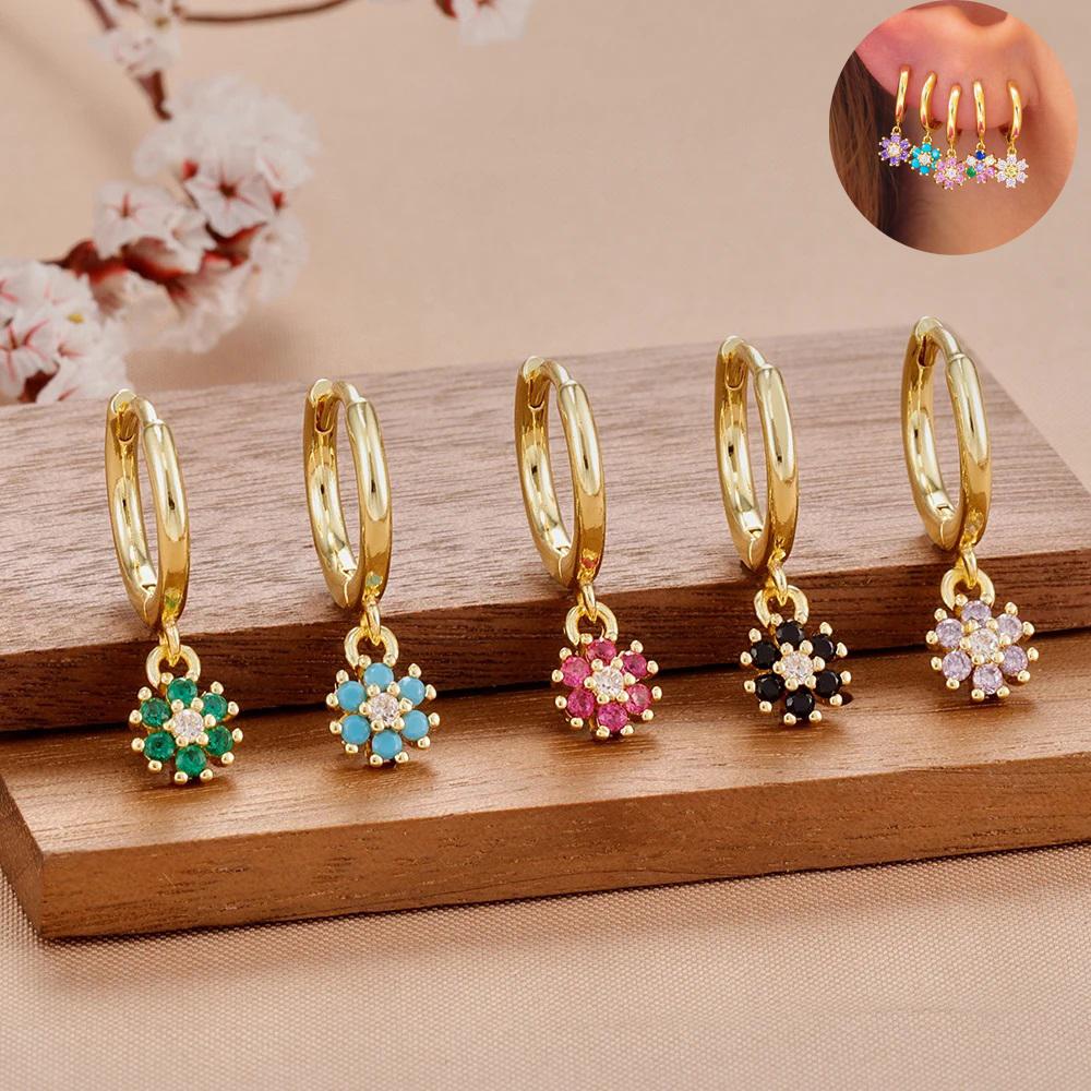 Exquisite Multicolor Crystal Flower Hoop Earrings for Women Girl Stainless Steel Fashion Korean Wedding Romantic Jewelry Gifts