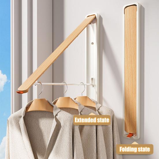 This clothes drying rack offers a space-saving, wall-mounted design that blends seamlessly with your home decor. When closed, it fits perfect against the wall, occupying no extra space and doubling as discreet wall decoration. Crafted with a sturdy aluminum alloy frame finished in elegant walnut or oak wood grain, it combines durability with stylish appeal without the maintenance of solid wood.