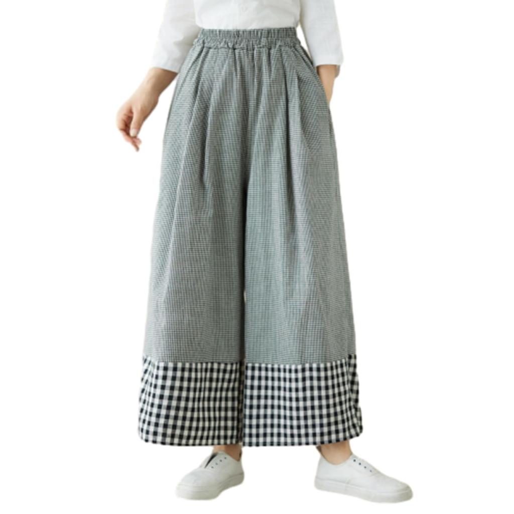 RoyzTocz Gaucho Checkered Long Plus Loose Women's Wide-Leg Pants, Pattern, High-Waisted Trousers, Pants, Sizes, Casual, Stylish, Leg-Lengthening,