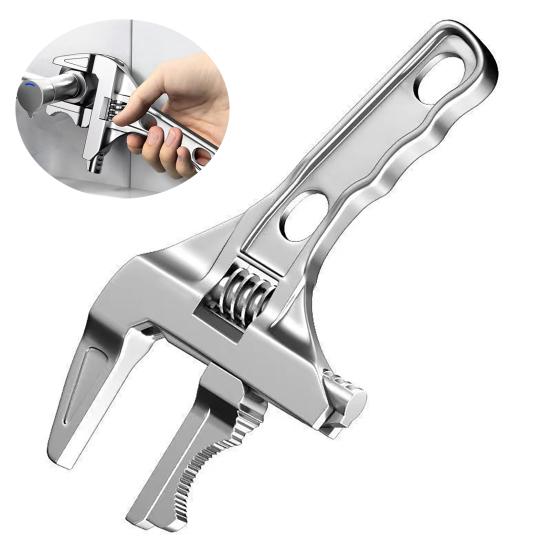 This adjustable wrench is perfect for versatile use, easily handling both metric and US standard bolts in home, bathroom plumbing, automotive, and workshop repairs. Featuring an extra-wide jaw opening, it accommodates a broad range of fastener sizes with ease.