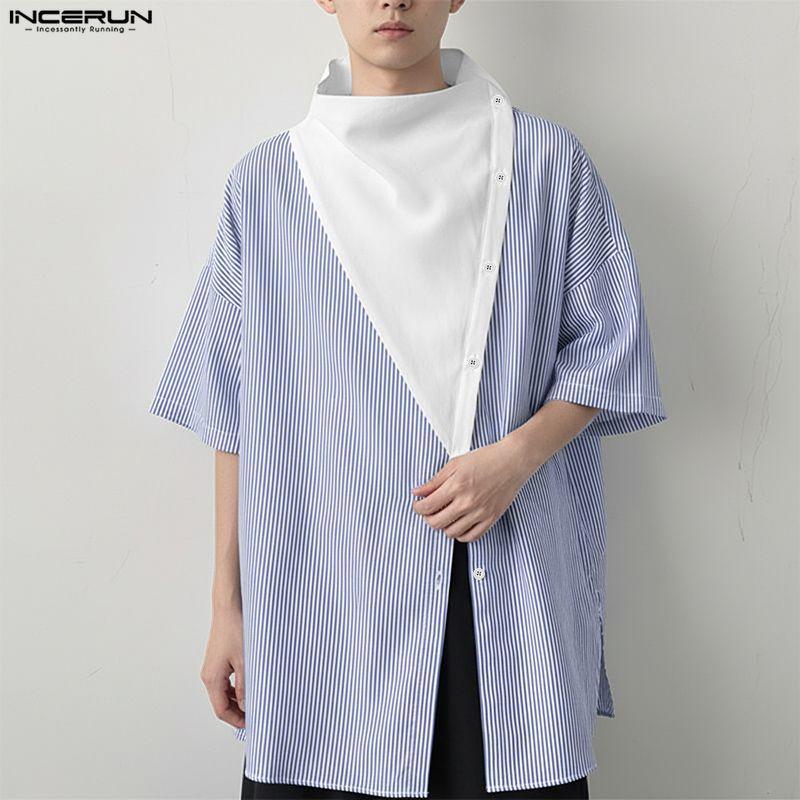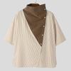 INCERUN Summer Men Stand Neck Short Sleeve Patchwork Casual Loose T-shirts Tops