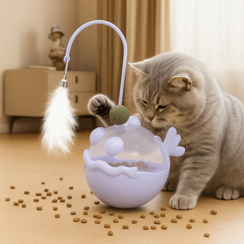 Plastic Cat Treat Dispenser Tumbler Cat Teaser Wand Spill Feeder Pet Puzzle Toy Kitten Play