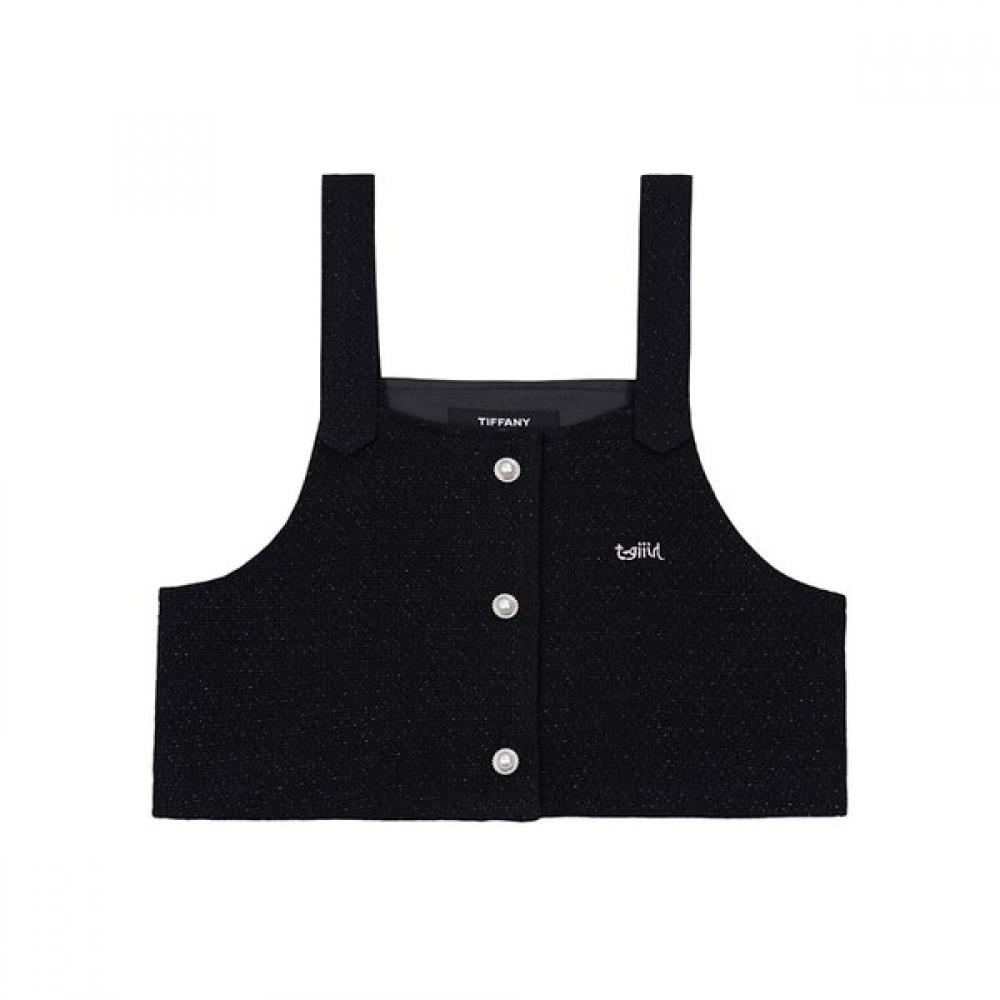 This is a tweed bustier with a subtle pearl feel. The button closure makes it easy to wear, and the back strap is nano-inch to adjust the length. It can be coordinated with SK (T54KAS010) to look like a dress.