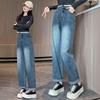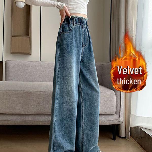 Discover the ultimate blend of comfort and style with these high-waist, plus-size jeans designed for the autumn and winter seasons. Featuring a floor-length, wide straight leg and a loose fit, these jeans are crafted to create a slimming effect while ensuring maximum comfort. The unique fluffy appearance is achieved through the luxurious chenille material used for the fur accents. Combined with the flexibility of spandex, these jeans offer a flattering fit for sizes up to 200 Jin. Perfect for chilly days, these jeans are a must-have addition to any wardrobe looking for trendy yet cozy options.