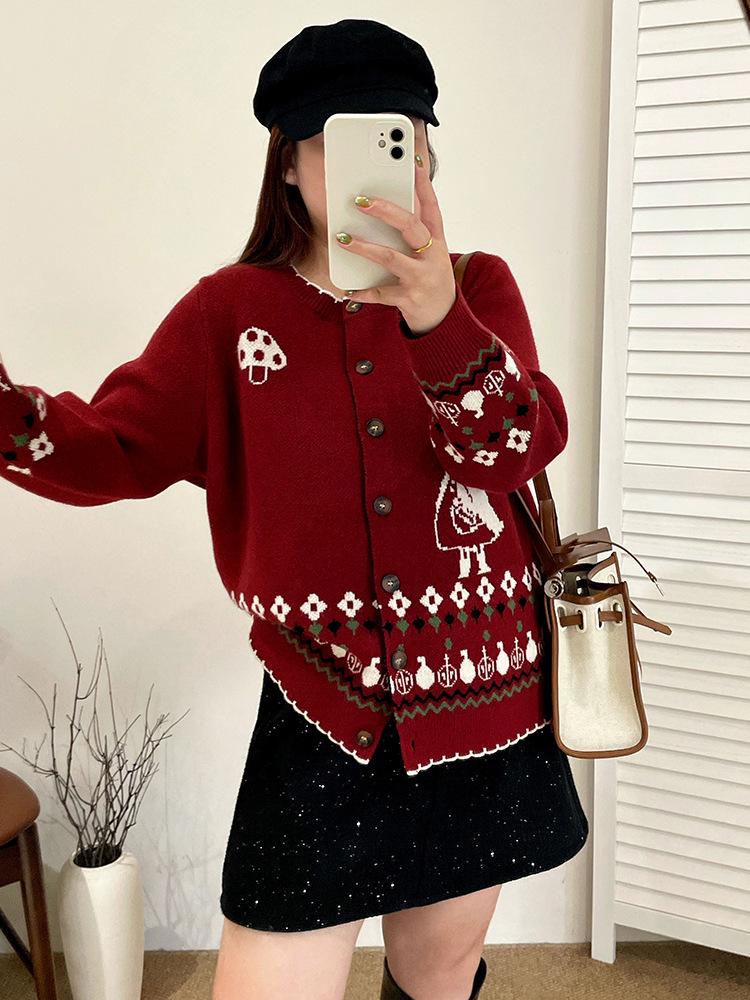 Plus Size Women's Retro Jacquard Sweater Coat, 2025 Winter Loose Knit Cardigan, Style 23538