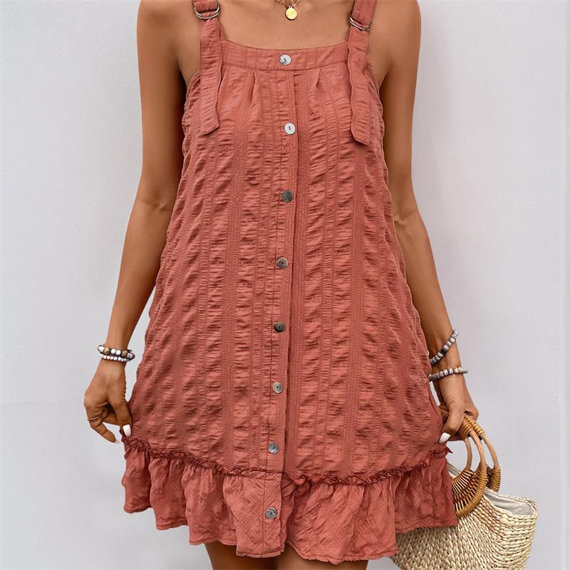 2026 New European And American Camisole Dress Cross-border Solid Color Texture Pleated Ruffle Edge Dress