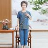 This women's short sleeve t-shirt and pants set is designed with seniors in mind, offering a perfect blend of comfort and style. Crafted from high-quality artificial silk material, the set provides a luxurious feel against the skin. The unique ice silk fabric ensures optimal breathability and a cooling effect, making it ideal for warmer days. The relaxed fit and soft texture of the ensemble not only enhance ease of movement but also add a touch of elegance to everyday wear. Perfect for lounging at home or casual outings, this set effortlessly combines practicality with a touch of sophistication.