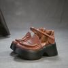 Johnature Genuine Leather Thick Soled Sandals Retro Round Toe Thick Heel Women's Platform Shoes