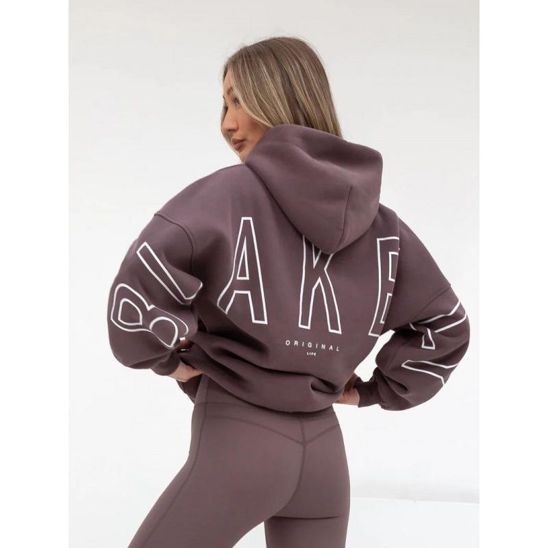 BLAKELY New Fashion Women's Printed Thickened Long Sleeve Loose Hooded Hip Hop Sweater Daily Home Top Brick Red