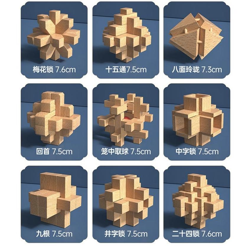The Luban (Kongming) Lock is a traditional Chinese intellectual toy rooted in ancient wooden architecture. Believed to be invented by master craftsman Lu Ban, it challenges players to assemble interlocking wooden pieces, sharpening the mind and improving hand-eye coordination while offering hours of screen-free fun for all ages.