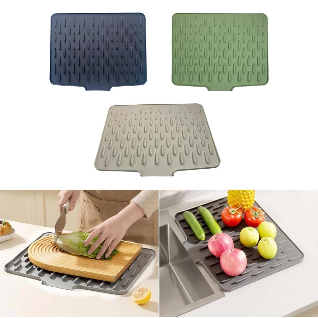 Silicone Dish Drying Mat Avoids Water Build Up Refrigerator Sturdy Heat Resistant Insulation Pad Drain Pad Dish Drying Pad