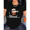 European Size Women's Pure Polyester Fashionable Graphic Portrait Print T-shirt - Casual Short-sleeve Crew Neck Top, Lightweight And Comfortable