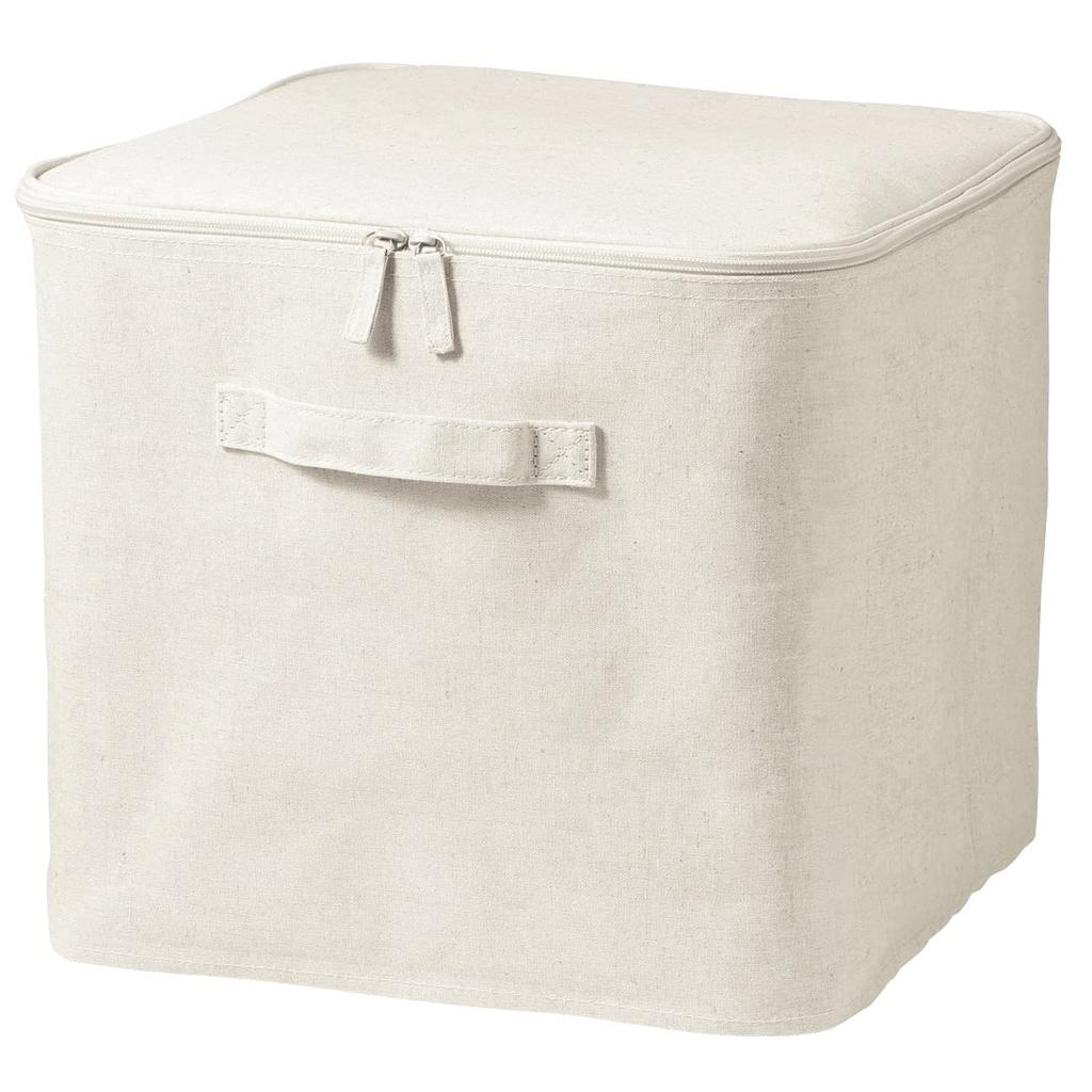 MUJI Soft 35cm W X 35cm D X 32cm Polyester Lid Product Suitable for Clothing Storage Box, Large, H, Linen, Included, Number 12403494,