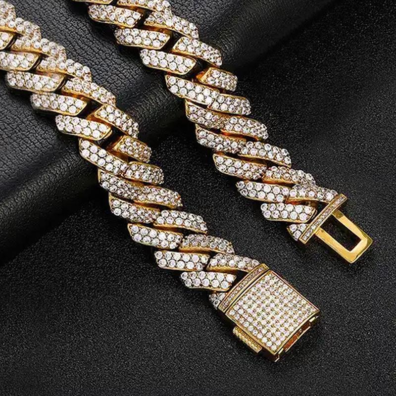 Cuban Chain Hip Hop Men's and Women's Necklace European and American Hot Selling Diamond Double Row Zircon Chain Flap Buckle Accessories