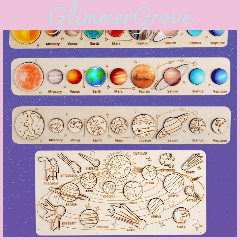 This kids educational space puzzle board features a wooden construction . It displays the eight major planets of the solar system, promoting recognition through engaging play and visual learning. Made from durable wood, it supports safe handling and long-term use.Designed for classroom, home, or educational settings, this non-DIY, multi-colored puzzle enhances understanding of planetary arrangement and space concepts. Users can wipe clean with a damp cloth to maintain its appearance, making it suitable for young learners interested in astronomy and STEM activities.
