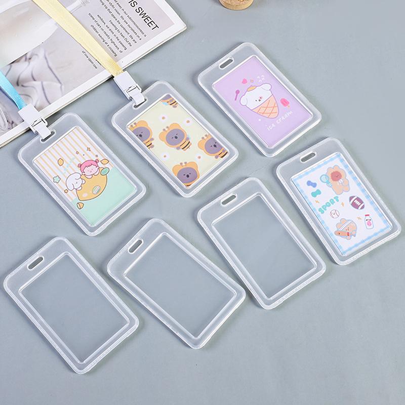 10Pcs New Plastic Card Sleeves With Lanyard Transparent Id Card Protective Cover Student Id Bus Card Holder