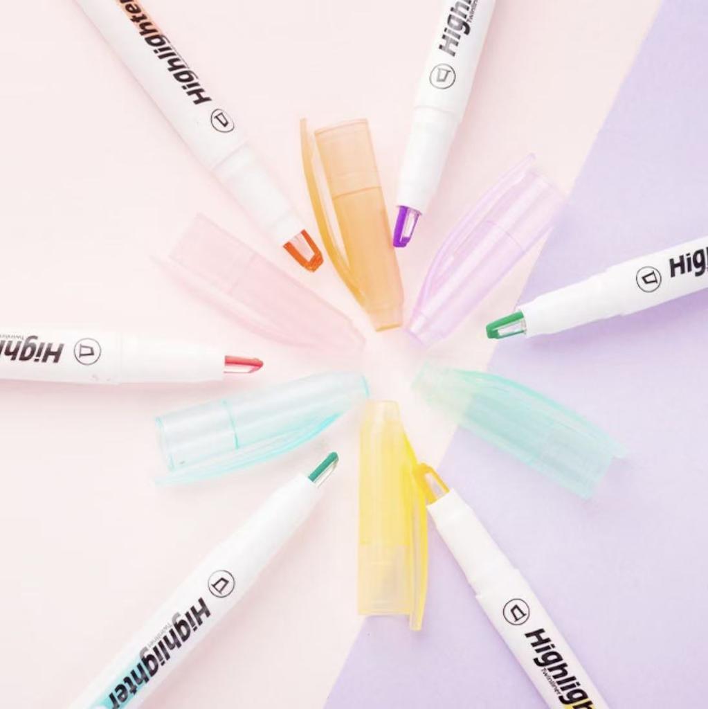 6Colors Dual-Tip Clear View Tip Highlighter, See Through Window Chisel Tip and Fine Tip, Back To School Stationery Supplies
