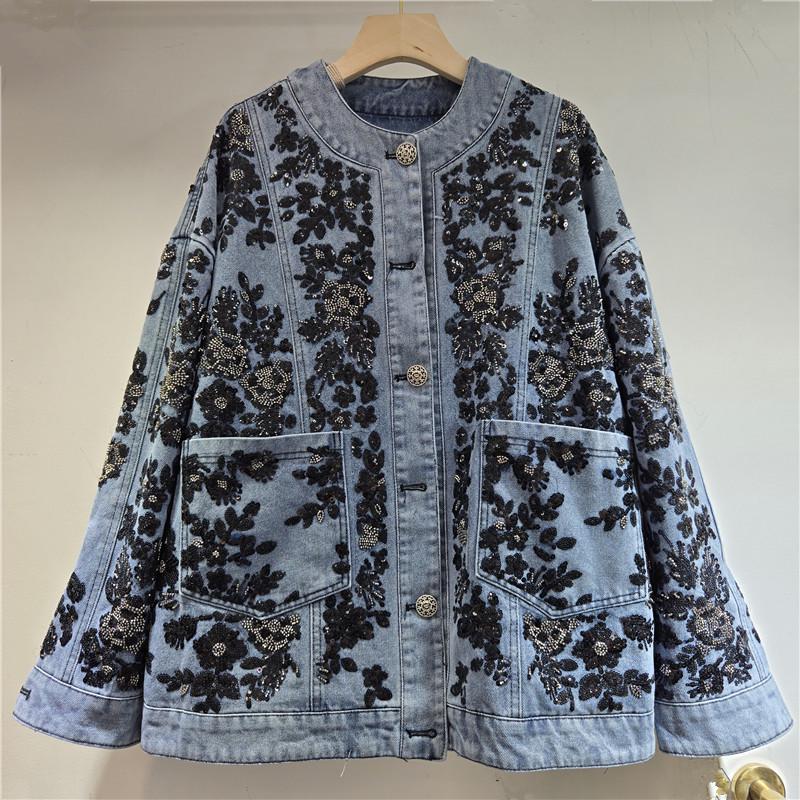 Women's 2025 Autumn/Winter Sequin Embroidered Denim Jacket - Retro Light Luxury Trend