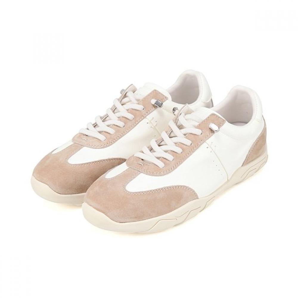 The BBJ164 formal casual women's sneakers made of cowhide feature a sleek design highlighted by clean lines, with a luxurious aesthetic created through a blend of monotone and ivory. The minimalist design pairs well with a variety of outfits, such as slacks or skirts, while the tone-on-tone shoelaces add a cozy mood and femininity to the casual style.