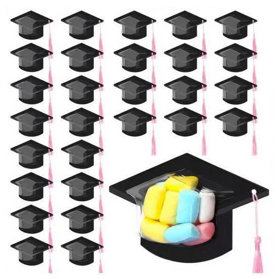 Perfect for sharing sweet surprises with classmates, friends, teachers, or guests at graduation parties and school events. The classic cap shape with tassels adds a cheerful touch to any celebration, making them ideal as party favors, table decorations, or small gift cards. Easy to assemblesimply insert the candy dome, fill with treats, and attach the tassel for a personalized graduation gift.