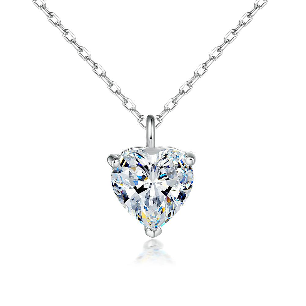 S925 Sterling Silver Love Heart Pendant European and American Simple Heart Zircon Necklace Women's High Sense