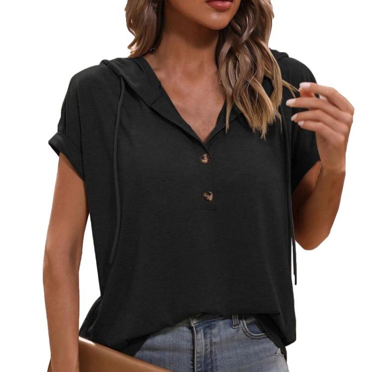 Features: Our short-sleeve V-neck hoodie combines comfort and with wide sleeves, ensuring casual yet stylish everyday wear.