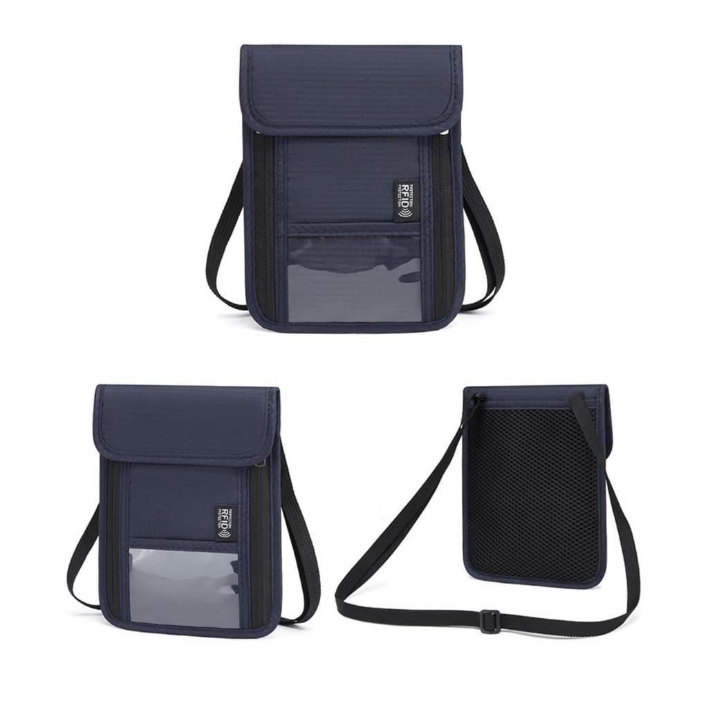 Designed for safe transport of passports and valuables during travel and business trips, this product features 360° RFID anti-skimming protection, completely protecting electronic card information such as credit cards and ID cards from unauthorized access. The slim design allows it to be used as a neck-hanging passport case, concealed under clothing, and also functions as a security pouch for added security. Multifunctional Pockets for Organization: Multiple pockets allow for organized storage of passports, cards, boarding passes, hotel keys, and more. It can be used as both a passport case and a pass holder, allowing for quick access to essentials, greatly improving travel efficiency. Lightweight and Compact for Easy Portability: The lightweight and compact design makes it ideal for travel. The adjustable shoulder strap allows it to be worn around the neck or across the body, making it suitable for a variety of occasions. High-Quality Materials and Carefully Crafted: Made from high-quality waterproof nylon and durable materials, the case is carefully sewn, and the zipper opens and closes smoothly. Its water-resistant design makes it suitable for any travel situation.