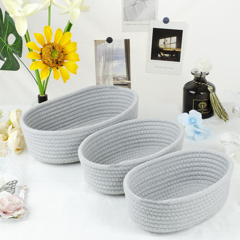 3pcs Cute Storage Baskets for Daily Items, Small Oragnizer Natural Cotton Rope Woven Baskets Bin Tiny Oval Storage Easter Basket