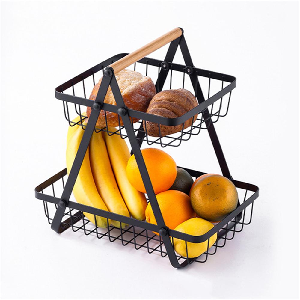 2 Tier Wire Fruit Basket Rectangle Metal Standing Basket Fruit Vegetable Garlic Caddy Freestanding Rustic Decorative Organizer