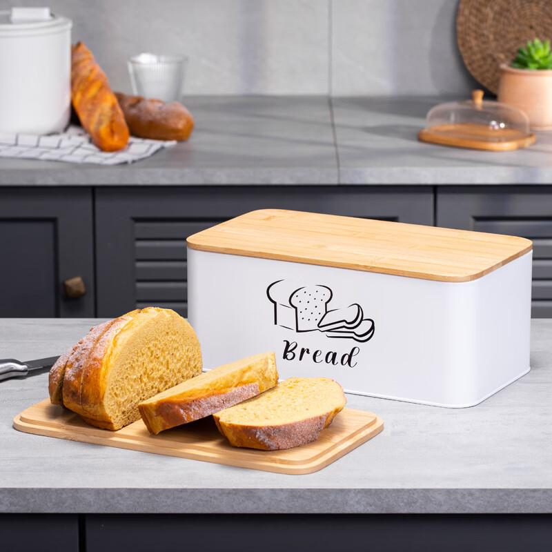 Bamboo Lid Metal Bread Box Set