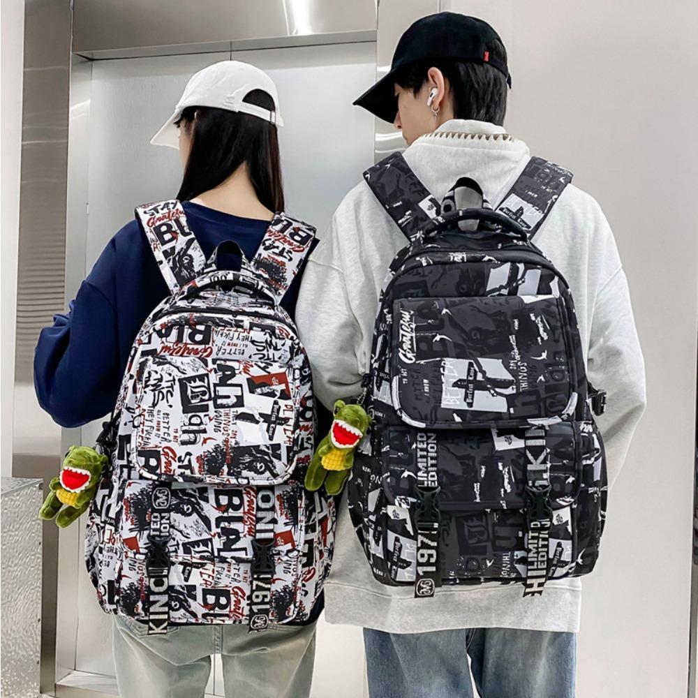 Junior High School College Student Schoolbag Female Graffiti Backpack Large Capacity Trendy Cool Boys Fashion High Value Travel Backpack
