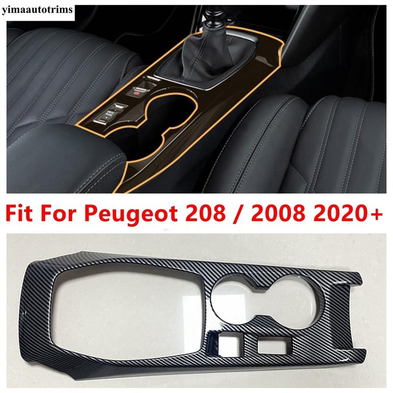 Central Control Gear Shift Water Cup Panel Cover Trim For Peugeot 208 / 2008 - 2025 ABS Carbon Fiber Accessories Interior