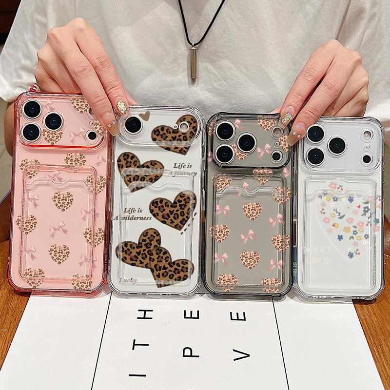 Card Slot Pocket TPU Phone Case For iPhone 17 Pro Air 16e 16 15 14 13 Pro Max 12 11 Colorful Love Heart Pattern Soft Back Cover